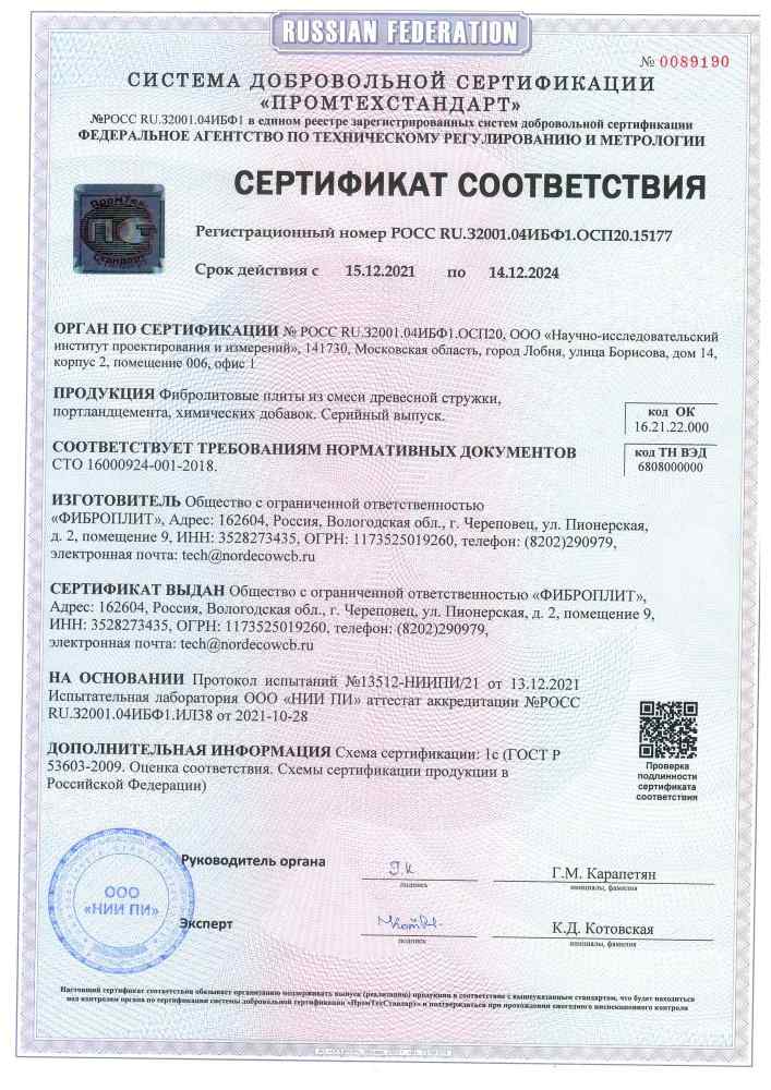 Фибролитовая плита Nordeco ФП 400-50С 2400х600х50 низкой плотности на сером цементе